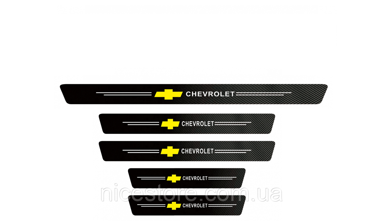 Наклейки на пороги та задній бампер карбонові з логотипом Chevrolet всі моделі та інші марки автомобілів