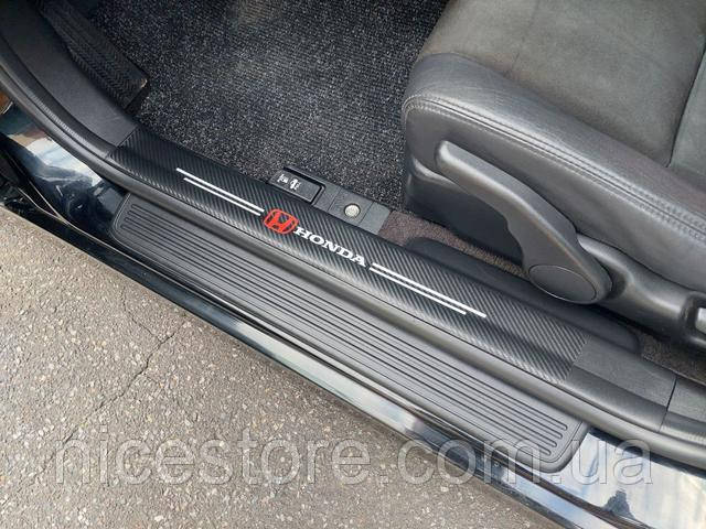 - Карбонові наклейки застосовуються для захисту внутрішніх, а також країв зовнішніх порогів автомобіля, запобігають появі подряпин і потертостей лакофарбового покриття.